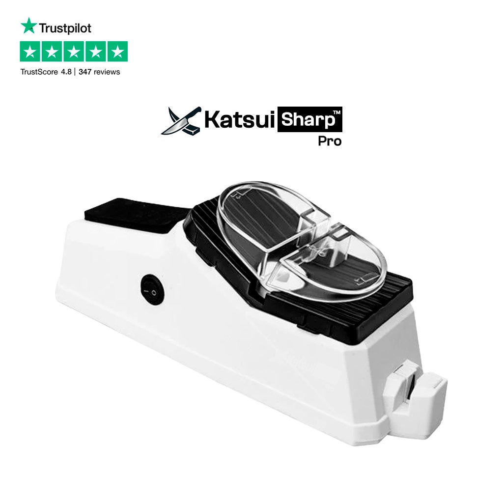 The package includes a KatsuiSharp Pro knife sharpener and a USB cable.